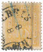 Land: Norge Katalog: NK6 Farge: Gul Kvalitet: Stemplet og tidligere hengslet Frimerket har reparasjon