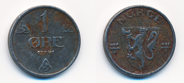 Valør: 1 øre - Årstall 1941 - Kvalitet: 1rust